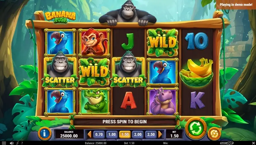 데모 모드에서 무료로 Banana Rush 슬롯을 무료로 사용해보십시오. 다운로드 또는 등록이 필요 없습니다.