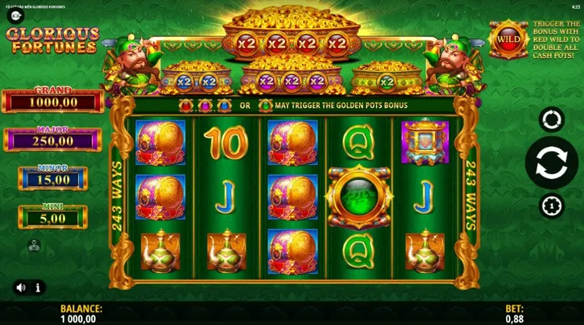 데모 모드에서 무료로 Fu Gui Hao Men Glorious Fortunes 슬롯을 무료로 사용해보십시오. 다운로드 또는 등록이 필요 없습니다.
